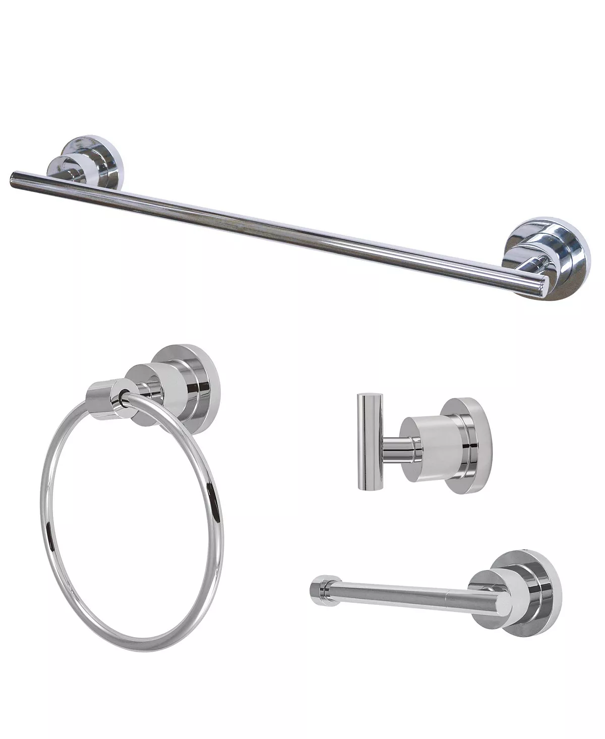 This all inclusive set of bathroom accessories features intricate detailing for a luxurious and astonishing style. One towel bar, towel ring, robe hook, and a toilet paper holder are included for all of your hanging storage needs.