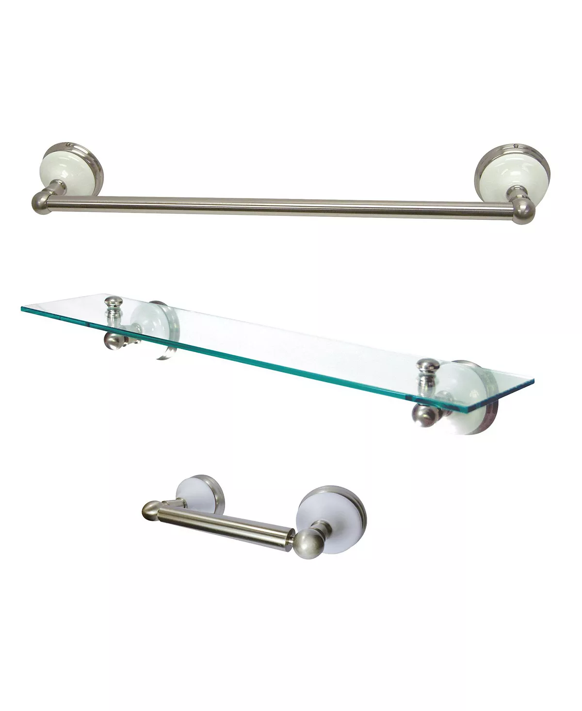 - 3 Piece Bathroom Accessory Kit Includes: 18″ Towel Bar, Toilet Paper Holder, and Glass Self