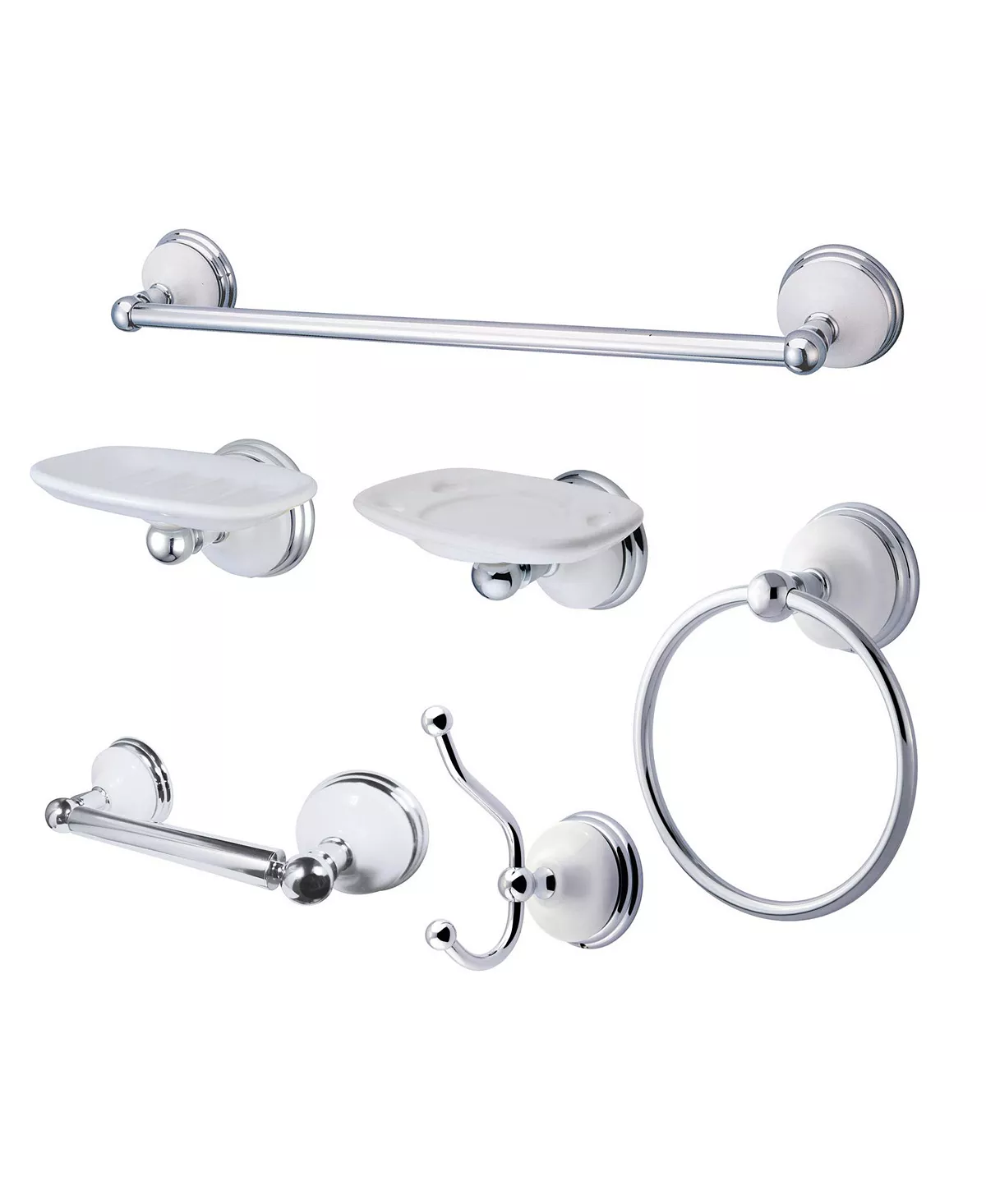 This all inclusive set of bathroom accessories features intricate detailing for a luxurious and astonishing style. One towel bar, robe hook, towel ring, toilet paper holder, soap dish, and a toothbrush and tumbler holder are included for all of your hanging storage needs.