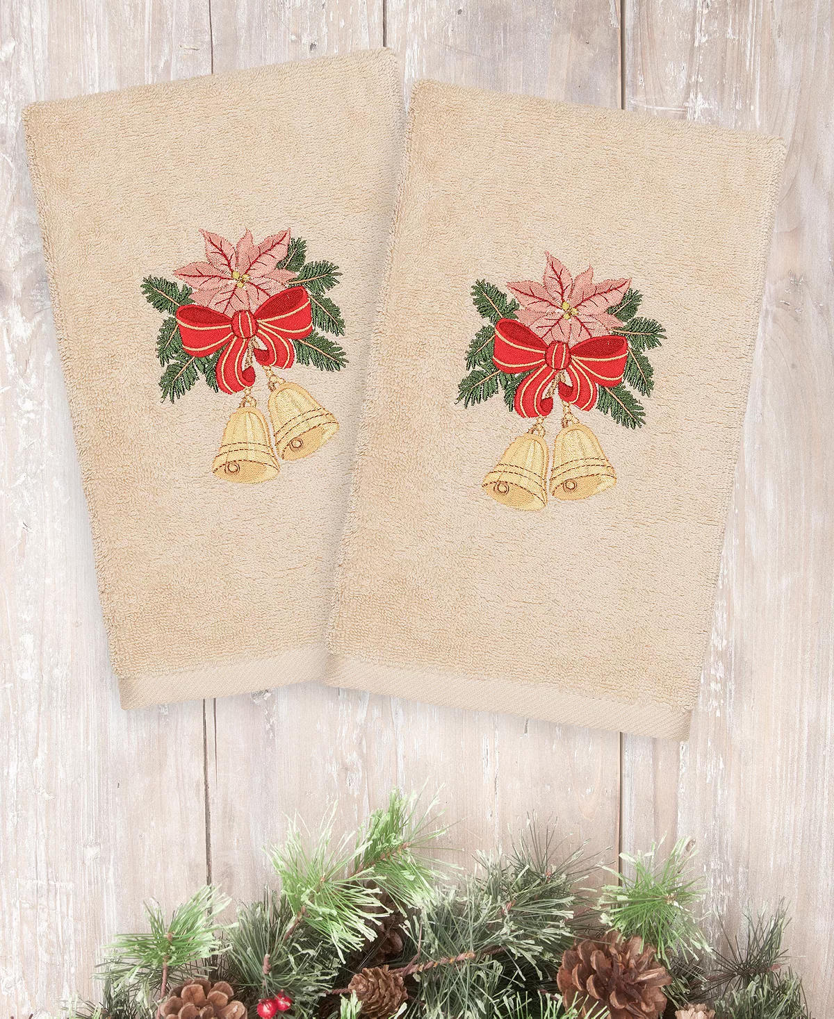Bring a joyous Christmas spirit to your decorations with this elegant embroidered hand towels for your guest bath. These “Christmas Bells “towels feature a bouquet of golden bells, pine branches, & poinsettia graced by a red bow which will add a merry mood to your festivities! This special & luxurious Christmas towel is manufactured with more cotton per square inch for maximum softness and absorbency. Our products are produced in Linum’s state-of-the-art vertically integrated green factory in Turkey, which runs on 100% solar energy.