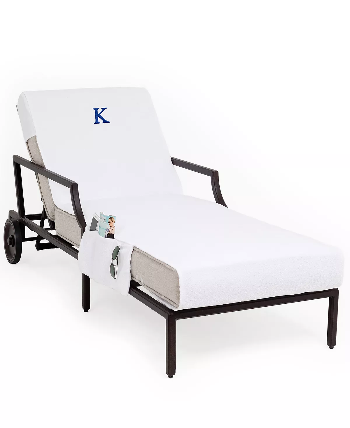 The Linum Home Monogrammed 100% Turkish Cotton Luxury Terry Chaise Lounge Covers are made to protect your cushions from harmful sun, spills, wear and tear while providing superb personal hygiene and extra lounging comfort. Whether at pool or beach, the unique design with 102″ extra length perfectly fits most cushions on the market. It ensures that the chase lounge is completely covered and makes worn looking chairs look new and colorful. These Chaise Lounge Covers are produced in Linum’s state-of-the-art vertically integrated green factory in Turkey, which runs on 100% solar energy, and feature three pockets.
