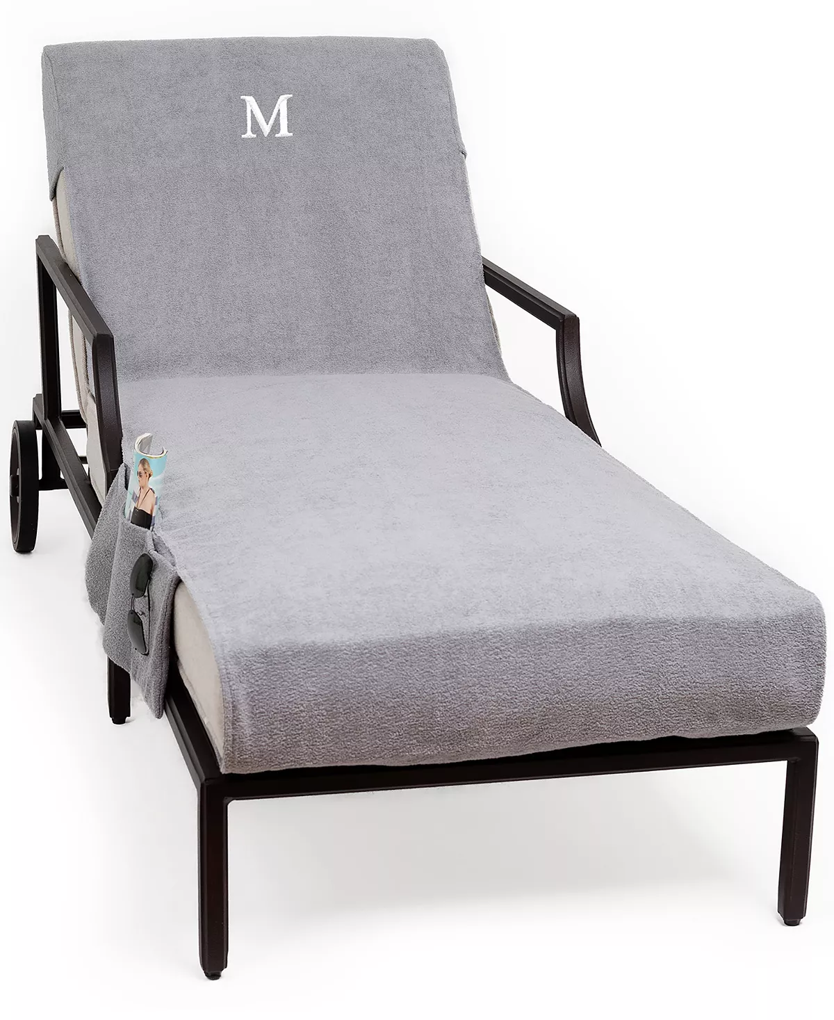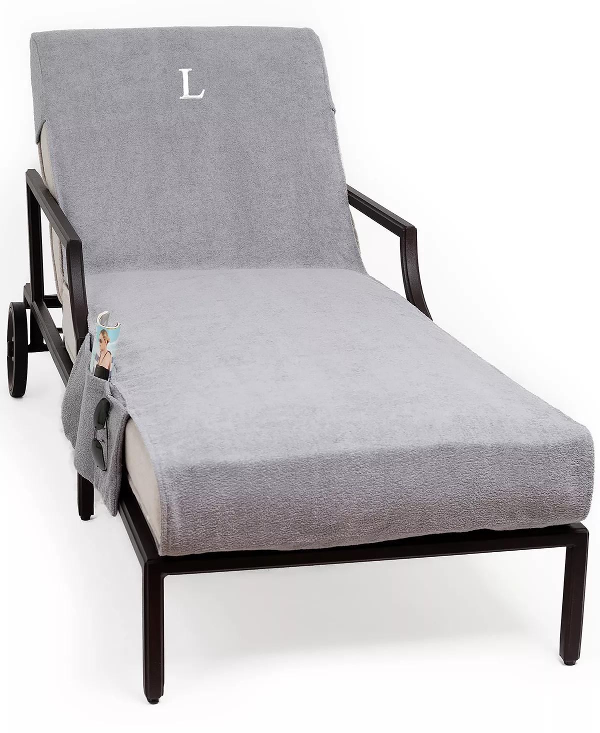 Linum Home Personalized Standard Size 100% Turkish Cotton Chaise Lounge Cover With Side Pockets