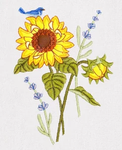 Create a mood of country charm in your bath with the GIRASOL Embellished towel collection. These towels feature an applique embroidered bouquet of vibrant sunflowers and lavender, highlighted by a bright bird perched on top. This collection brings a natural spirit and richness to your home decor.
