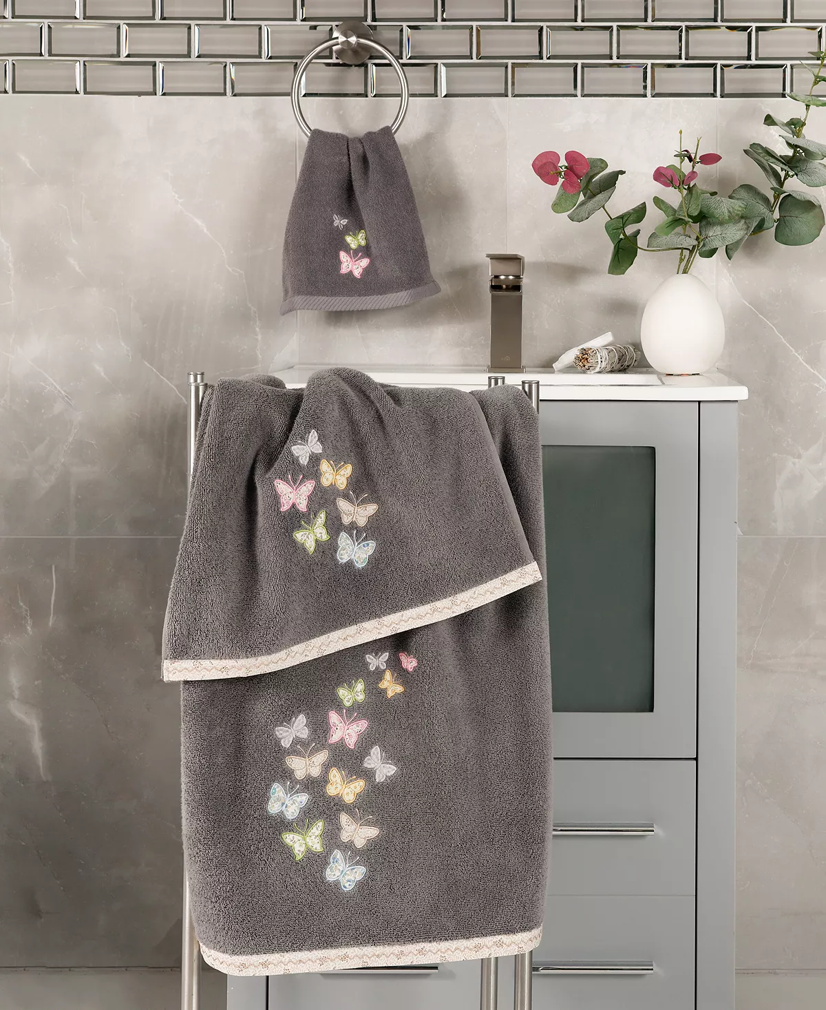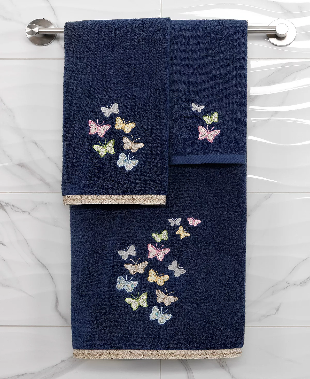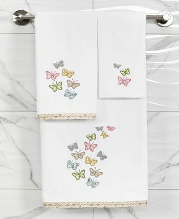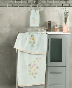 The MARIPOSA towels feature calico applique butterflies and are trimmed with a calico border. Cloud soft and absorbent, these luxurious, durable towels keep their plush appearance after washing. This towel collection brings a cottage spirit and richness to your home decor and makes a great gift.