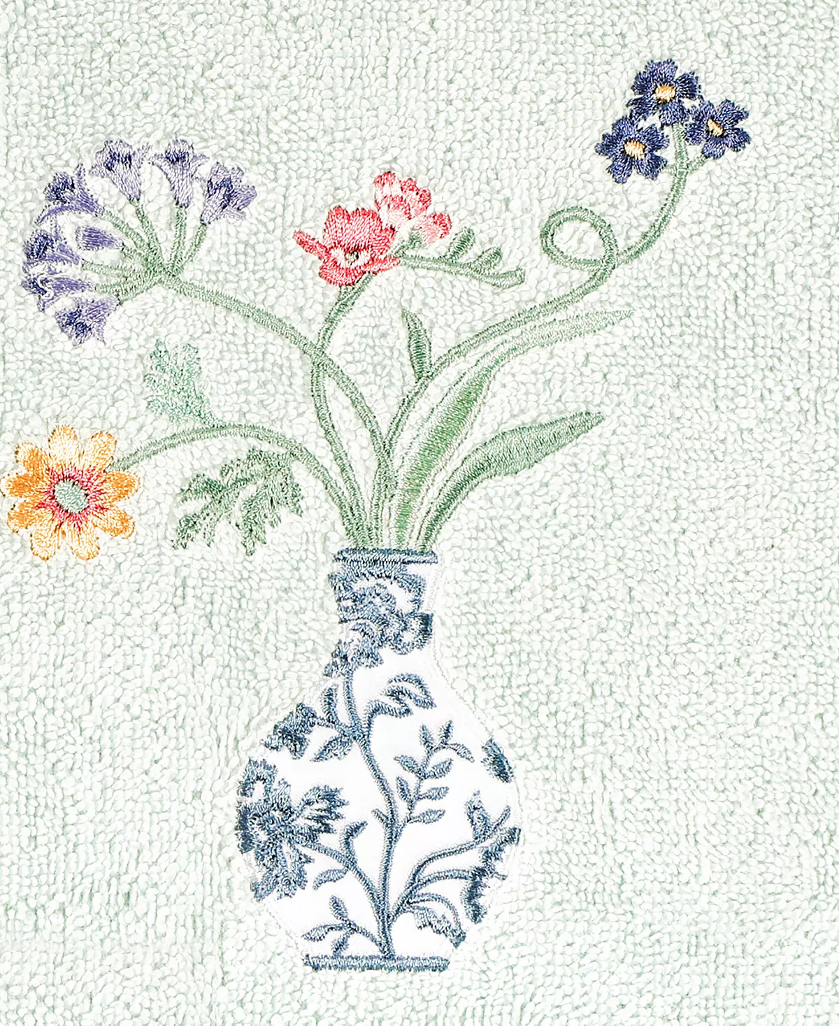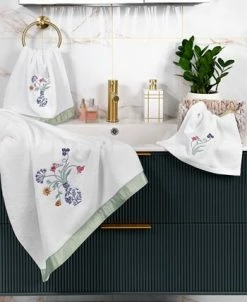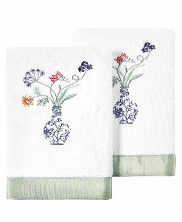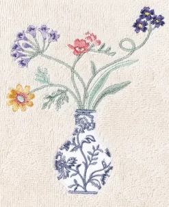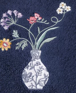 The STELLA towels feature lovely flower stems in an applique blue and white vase and are trimmed with a lustrous bengaline border. Cloud soft and absorbent, these luxurious, durable towels keep their plush appearance after washing.