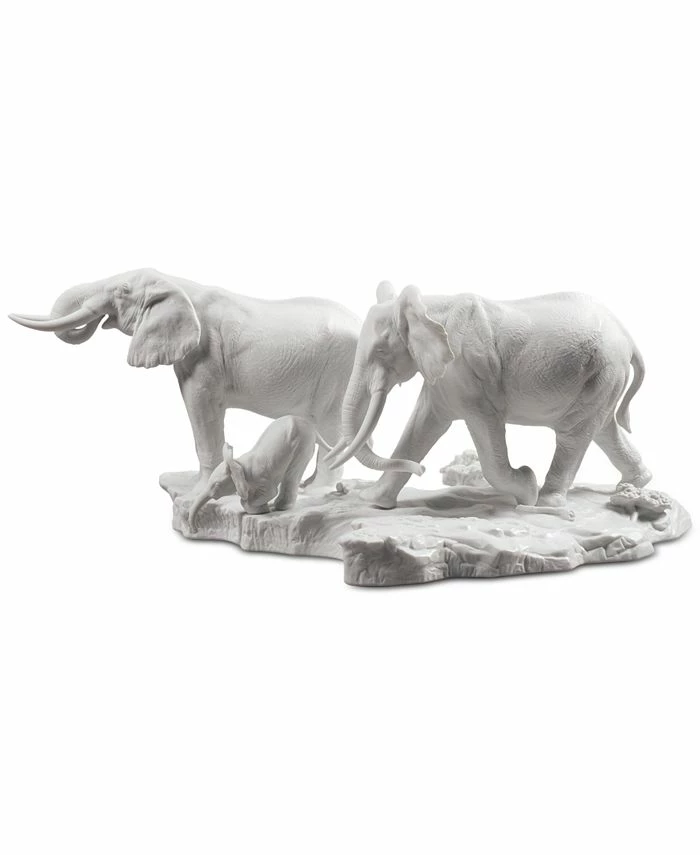 Porcelain textured to leathery perfection accents the stunning pack of pachyderms stomping through the A Stop Along the Way figurine from Lladró.