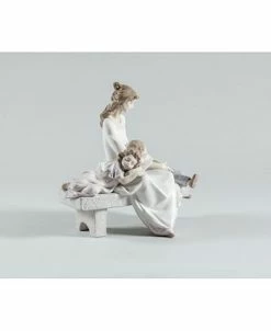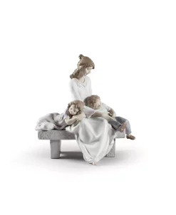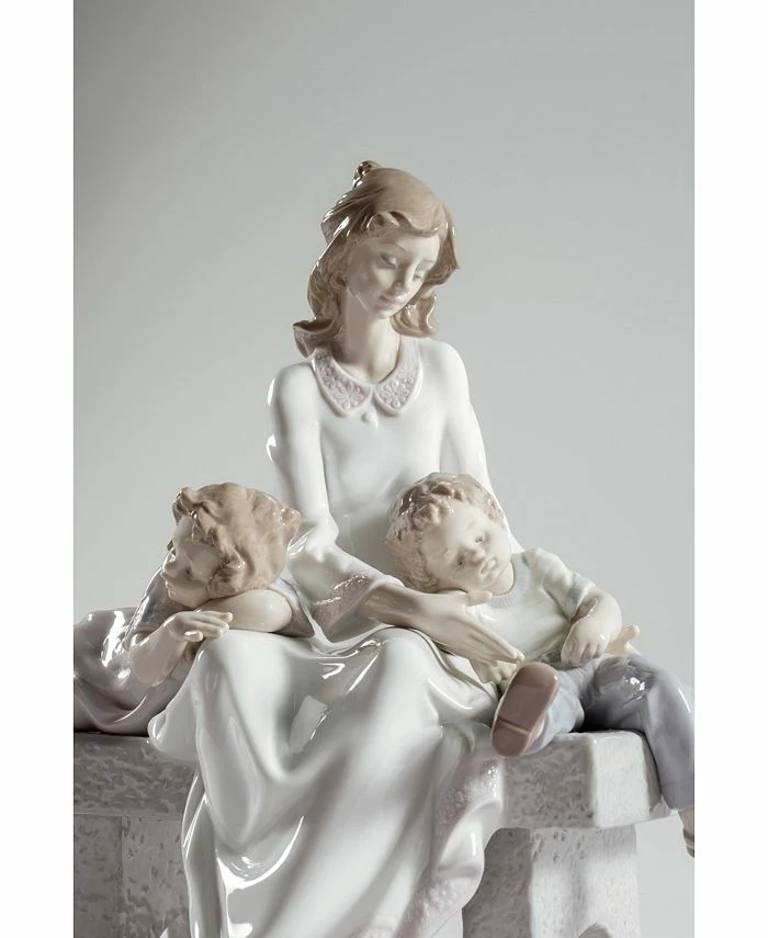 It has been a long day, full of fun. They haven’t paused for a second in their playing, running around and laughing and they have finally dropped down exhausted as Mom looks after them attentively and sweetly. A glossy porcelain piece, decorated in pastel colours, ideal as a gift, collectible or decoration.