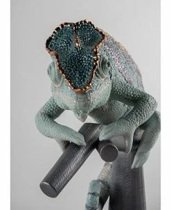 The blue, copper and pearlescent lusters with iridescent touches applied on this chameleon make it an excellent example of the mastery of Lladró’s ornamentation artists. The brand’s team of experts etch each detail by hand, including the animal’s scaly skin and the branch on which it is resting.