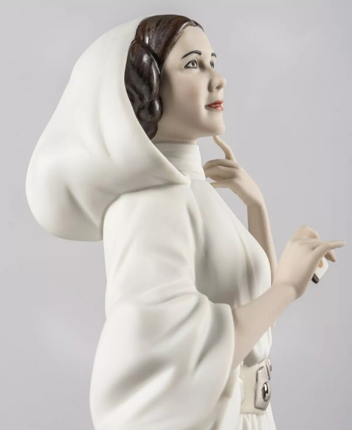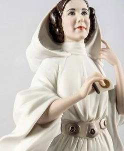 Princess Leia from Episode IV – A New Hope. Leia is holding the famous disc with the blueprints for the first Death Star, which she inserts into the droid R2D2 to deliver to the rebel forces.