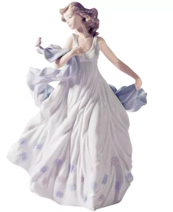 A fairytale moment in glazed porcelain, Lladro’s Summer Serenade figurine depicts a gorgeous young woman captivated by the call of a feathered friend.