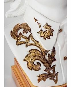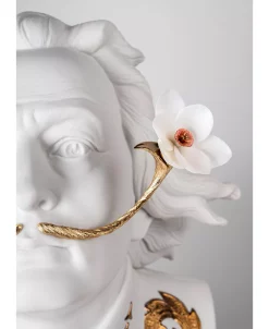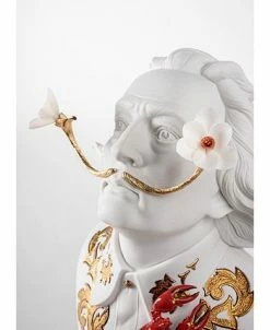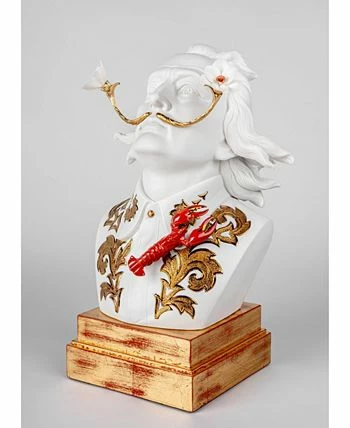 Porcelain sculpture paying tribute to Salvador Dali, one of the most popular, unclassifiable artists of 20th century. Color is added with red used to paint the lobster on lapel, another element in Dali’s work.