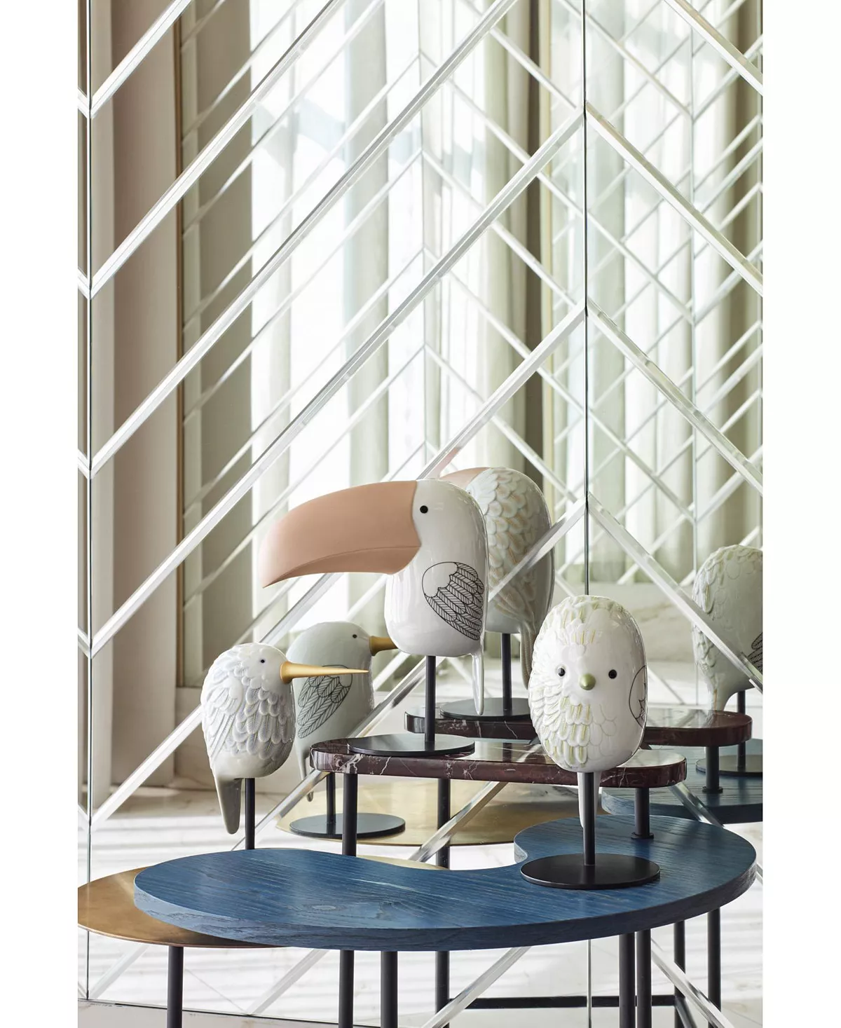 Face 2 Face is a new collection that opens with three cute little birds that combine synthetized forms with a two-fold decorative treatment. Toucan, Sparrow and Hummingbird are created using different techniques.