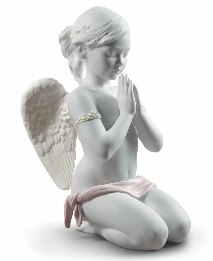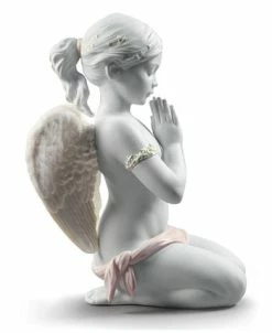 Heavenly Prayer is a porcelain sculpture reflecting an intimate moment as an angle prays for a better, fairer world.