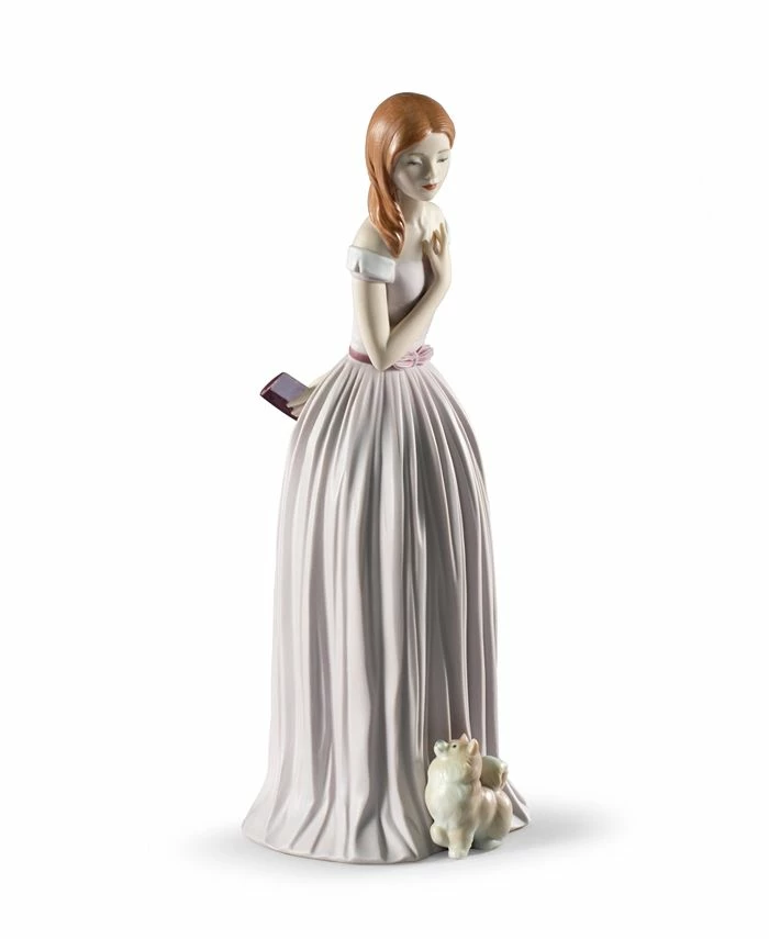 The new annual piece will be this classic representation of a lady with a very careful decoration. Details such as the clutch in her hand, the belt of the dress with delicate folds and the sweet dog that accompanies it. A creation that combines simplicity and attention to detail.
