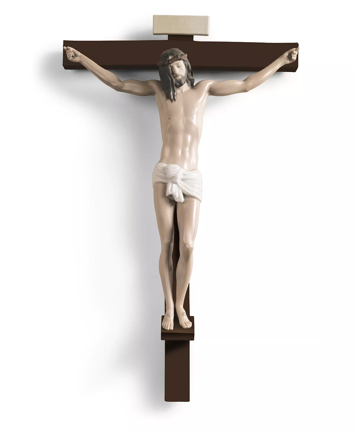 This image of Christ on the cross is reminiscent of Velazquez’s Christ, both in his form and the expression of his gesture. On the wooden cross is inscribed the phrase Jesus of Nazareth, king of the Jews in Latin, Greek and Hebrew.