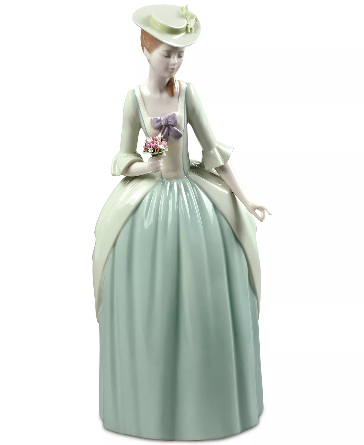 Delicate handmade flowers and exquisitely crafted porcelain add an elegant touch to this figurine by Lladró for a delightful accent to your collection with vintage appeal.