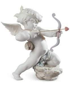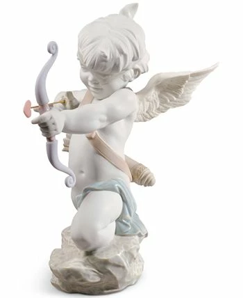 The universal symbol of love, Cupid appears in matte white porcelain, accented by pops of the classic Lladró palette in the bow, arrow, quiver, strap, drape and base of the Straight to the Heart figurine.