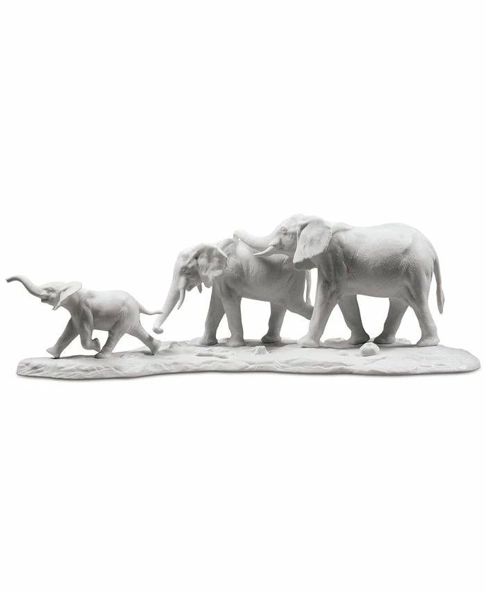 Textured to leathery perfection, a pachyderm pair falls in line behind the spirited strides of youth in the We Follow in Your Steps figurine from Lladró.