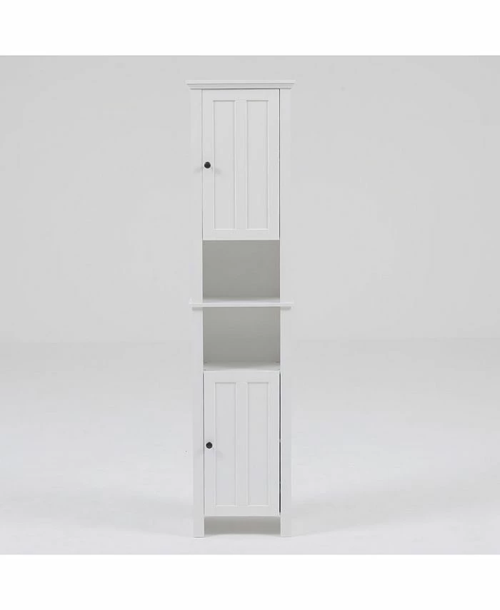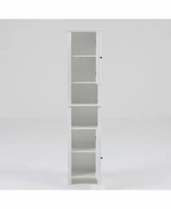 Keep your bathroom neat and organized with the attractive slim tall cabinet tower. The cabinet has great storage space with open storage in the centre, and single doors on top and bottom.