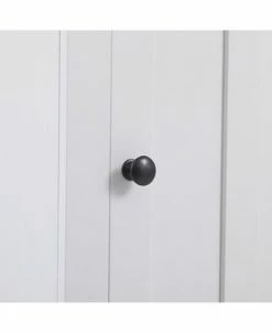 - Cabinet body and shelves are MDF in white finish