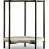 - Upholstered with 100% polyester fabric perched upon sturdy wood frame and metal legs
