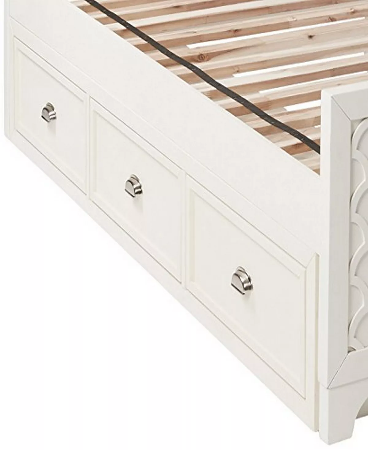 The Amanda collection’s fresh design combines a casual feel with a shell motif that gives the Amanda storage box unique appeal. The coastal aesthetic features a creamy white finish with polished nickel hardware for an on trend contrast. Works with twin, full and queen beds.