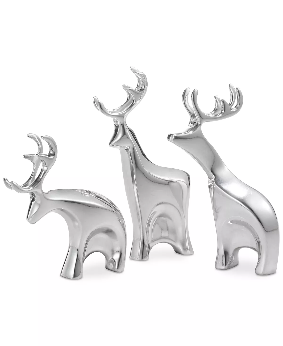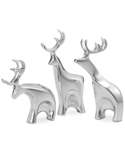 The trio of artful antlered reindeer in the Nambé Mini Blitzen set brings contemporary flair to a holiday display.