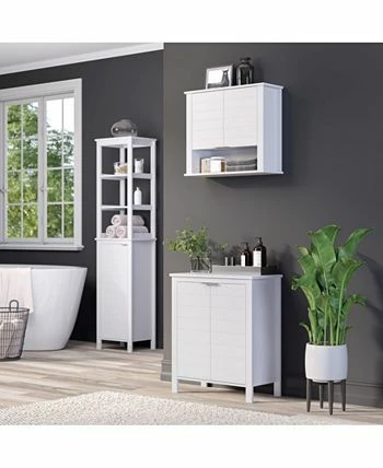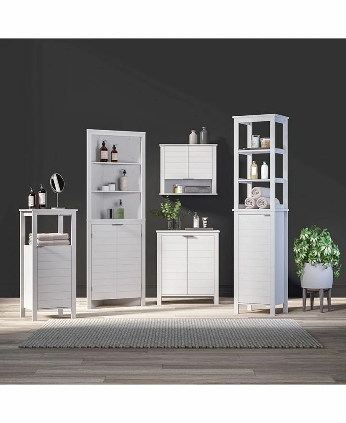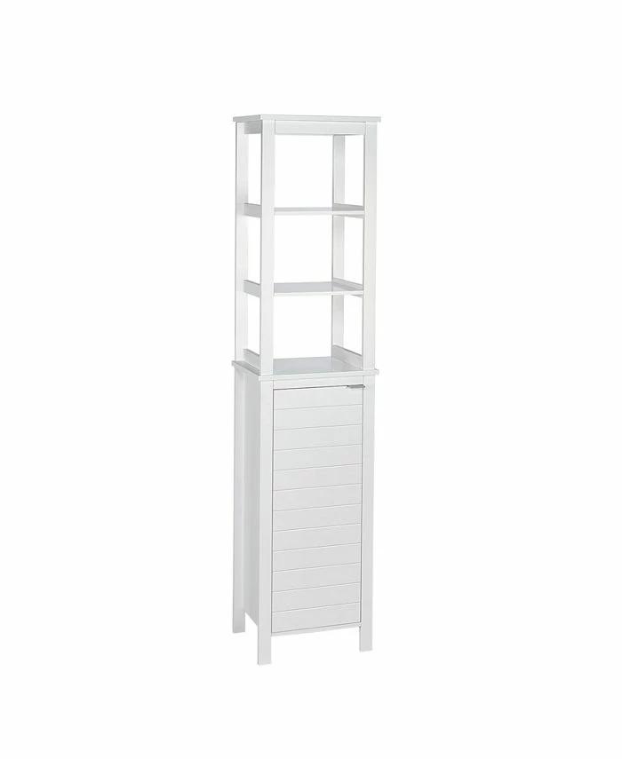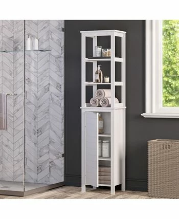 Give your space a clean, new look with RiverRidge madison collection linen tower with open shelves. Features 3 fixed shelves above and 3 shelves behind cabinet door 2 fixed and 1 adjustable.