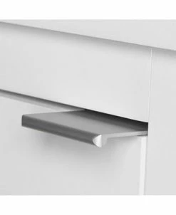- Horizontal grooves on cabinet door add a sleek, timeless look to any space