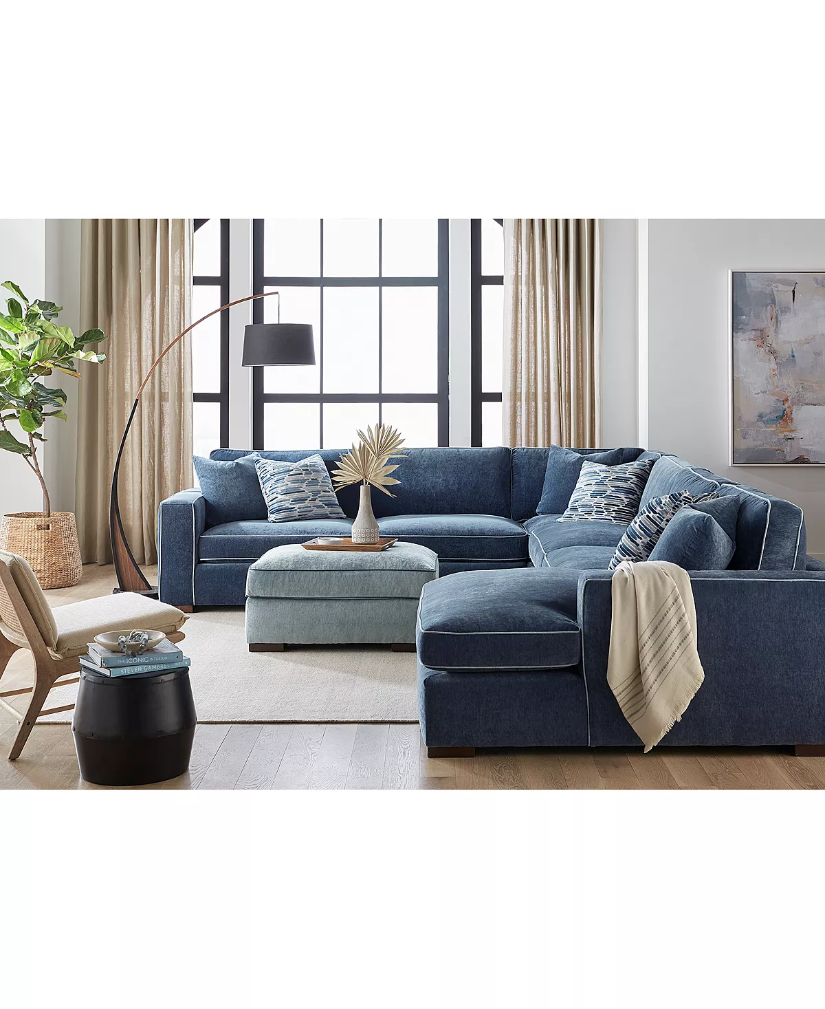 Cultivate a supremely fashionable atmosphere in your home with this transitional-styled four-piece sectional. Its lowered track arm and simple clean lines are defined by contrast piping make it an attractive contemporary solution in just the right size frame for urban living. Its rich upholstery and luxurious feel are sure to become your new favorite selection for any space needing a touch of class and comfort.