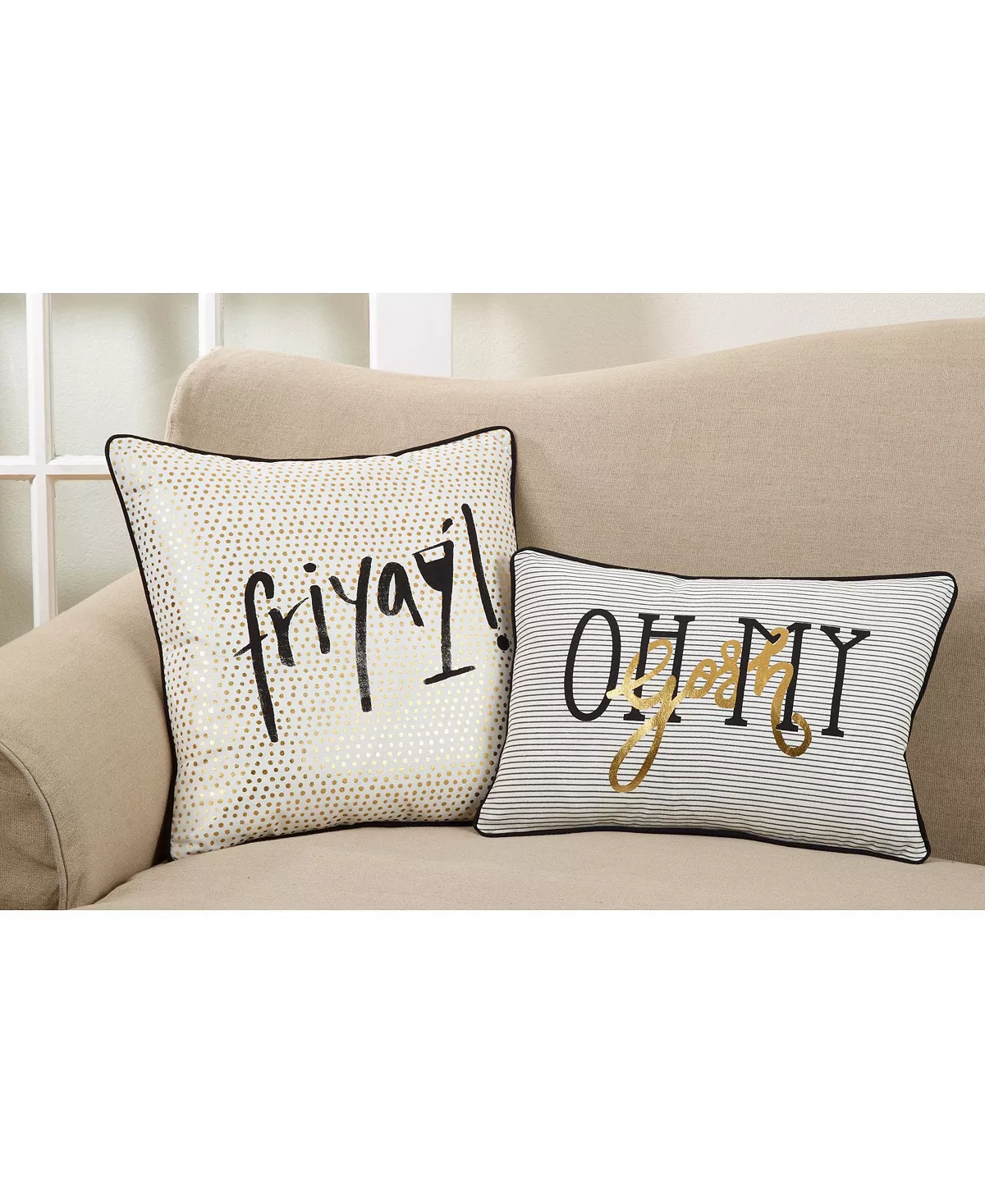 With so many catchy slogans and hashtags floating around, why not add another to the mix. This down-filled, gold dotted throw pillow makes you appreciate the start of the weekend.