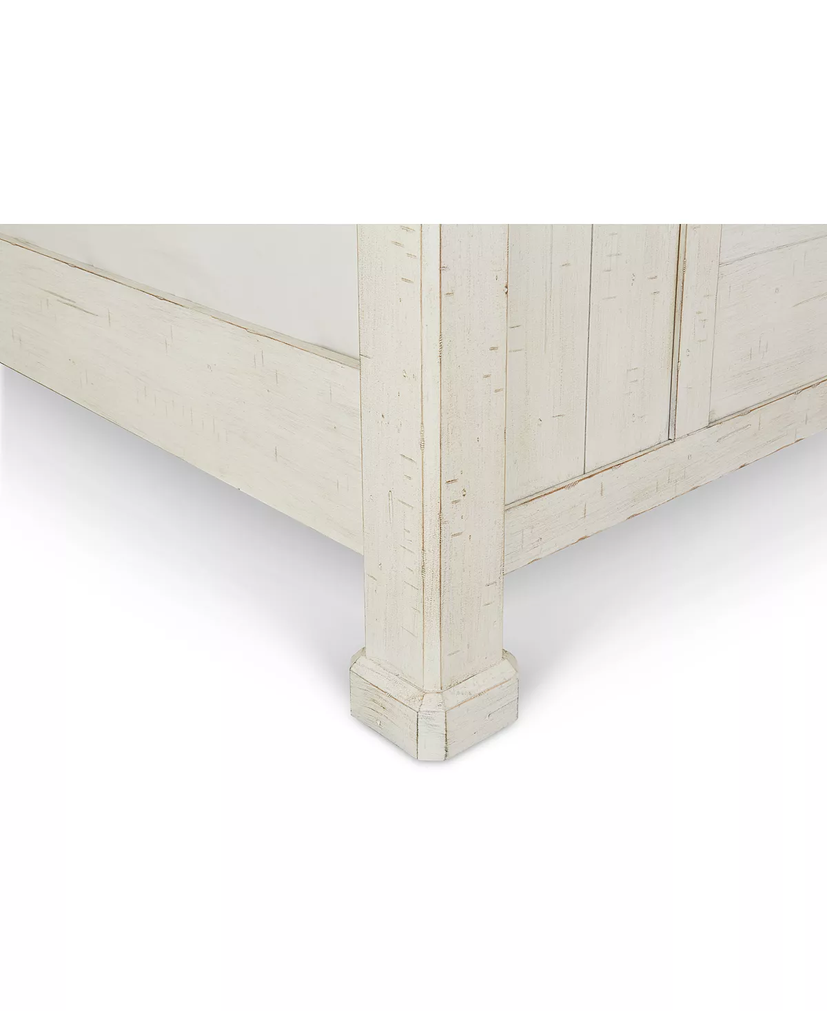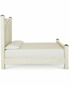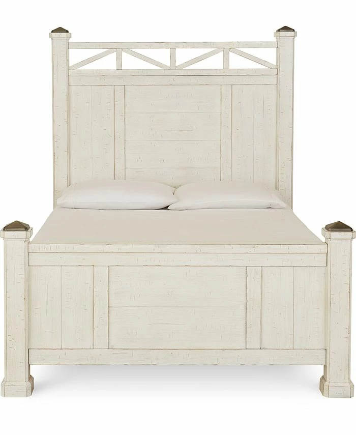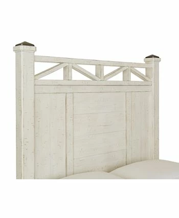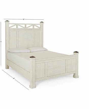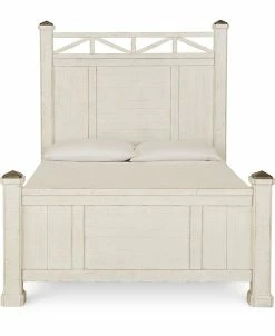 A classic, cool beachside vibe. The plank-style design and burnished pewter-tone capped bed posts of this queen bed, in a grainy-look wheat or crisp distressed off-white finish embodies chic vintage-inspired style while conveying a delightful, laid-back character.