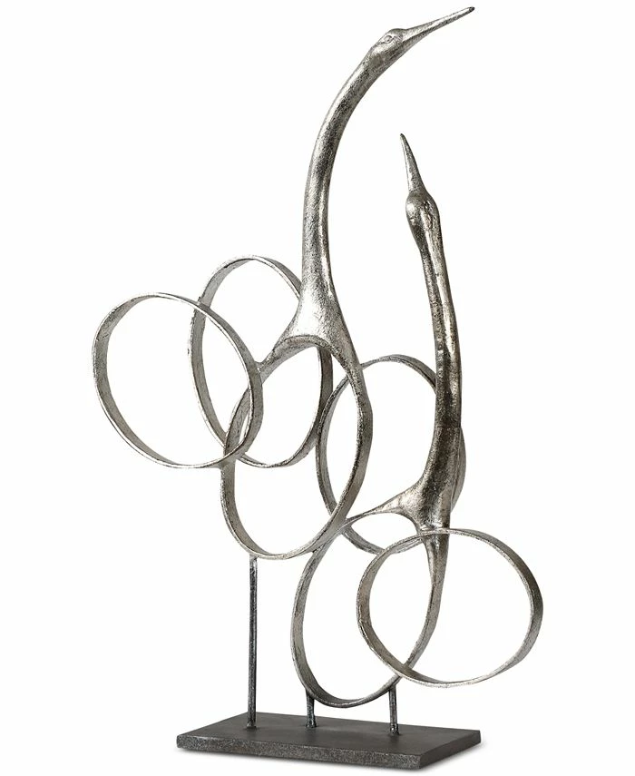 Elongated lines and elegant curves create the Uttermost Admiration bird sculpture’s sleek silhouette with a slightly antiqued silver finish.