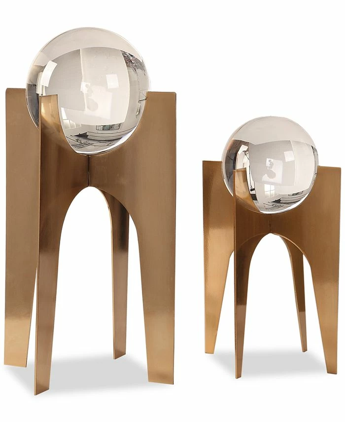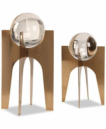 Space-age modern design is a highlight of this set of two Ellianna crystal spheres by Uttermost. The spheres are elevated on brushed, plated-copper bronze-finished bases and evoke a cool mid-century-inspired vibe.