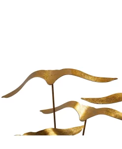 Gold-leaf seagulls take flight above this elegant contemporary sculpture from Uttermost, a combination of graceful lines and a distressed wooden base for unique style.