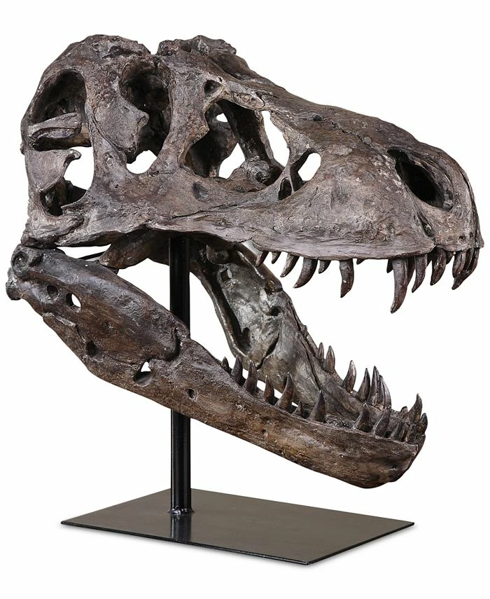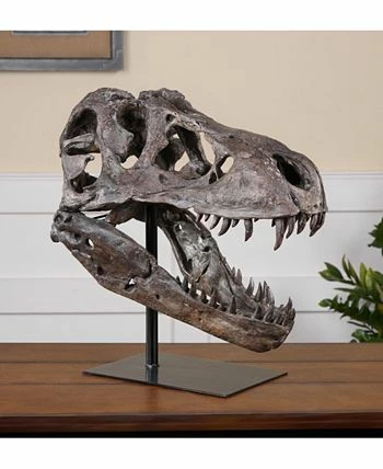 A ferocious piece in chestnut brown with gray accents for an aged look, this tyrannosaurus sculpture from Uttermost adds a distinctive note to your decor.