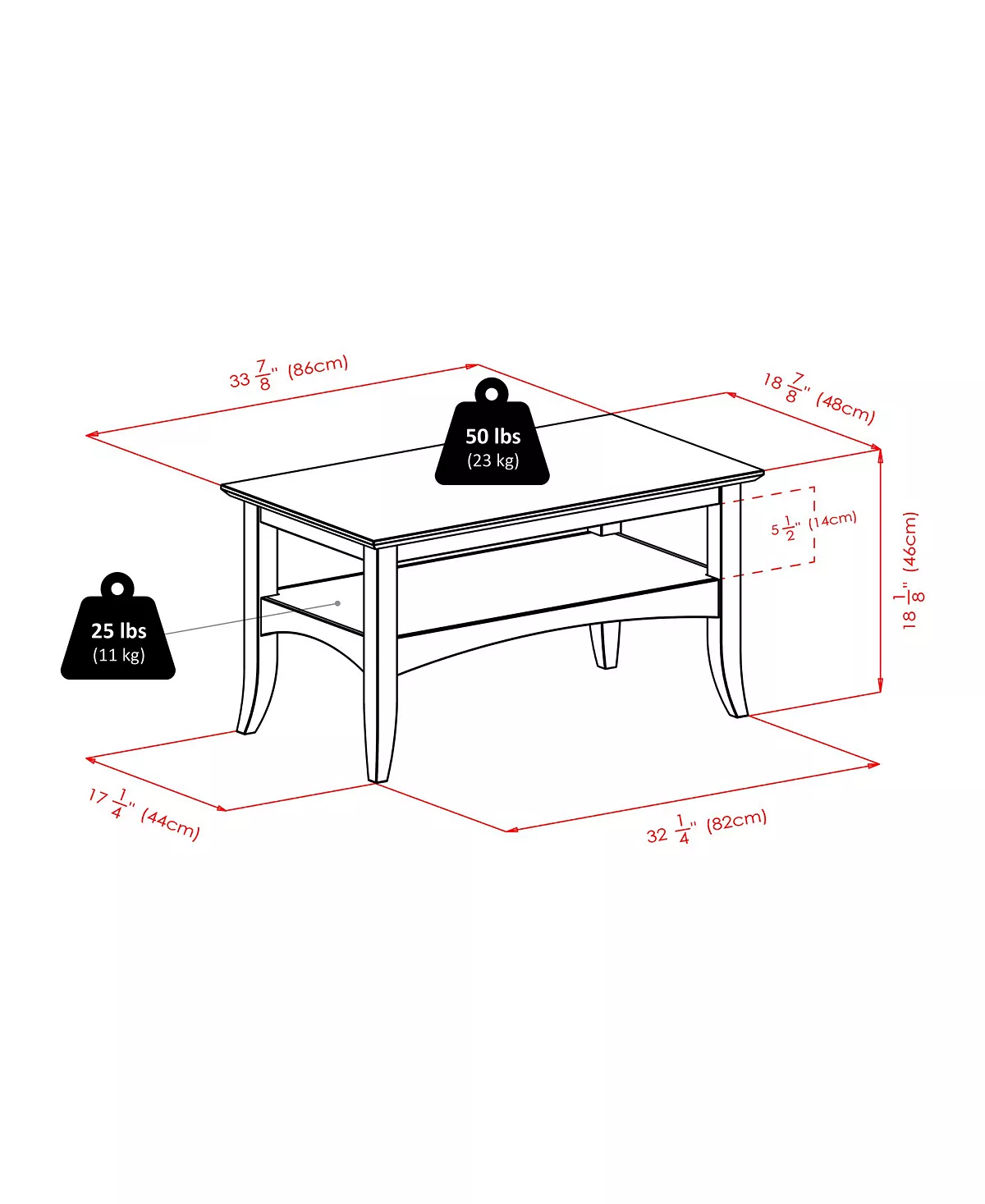 Make the Camden coffee table the centerpiece of your living room or family room. It offers time-tested traditional styling with the elegant touch of slightly flared legs and curved aprons that border the lower shelf.