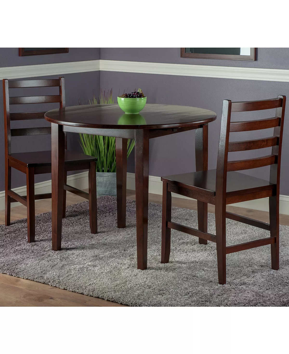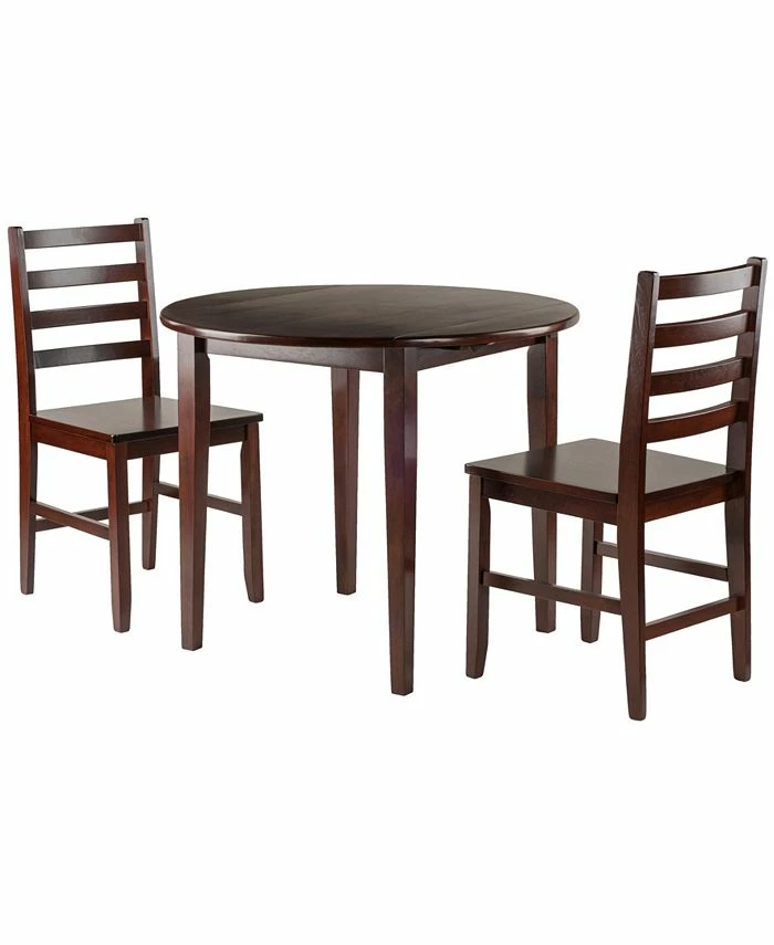Simplicity and versatility define this 3-piece clayton round drop leaf table set. The table has two drop leaves for added surface space. With two classic ladder back chairs, the set is perfect for the dining area or kitchen.