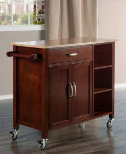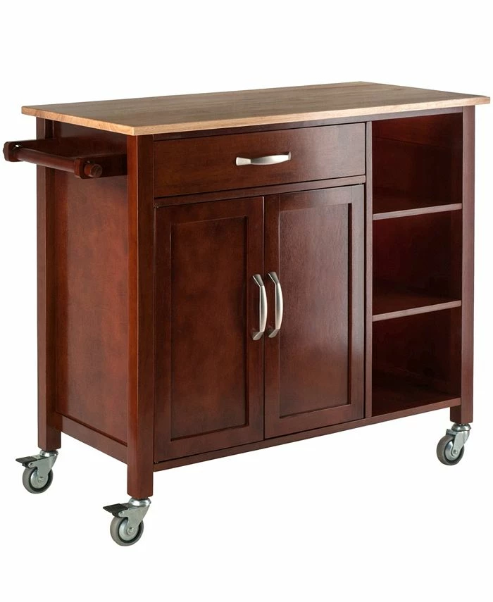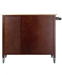Bring polish and function into your kitchen with the two-toned Mabel Kitchen Cart. The natural wood top made of solid Beech wood is a lovely contrast with the darker Walnut-finished cabinet.